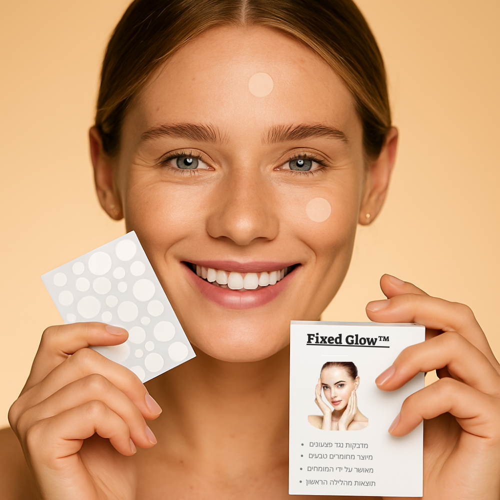 מדבקות הקסם נגד פצעונים של FIXED GLOW הן הפתרון המיידי והטבעי לעור נקי ובריא — בלי תרופות, בלי יובש ובלי כאב. כל מדבקה עשויה מתמציות טבעיות מרגיעות שפועלות ישירות על הפצעון, סופגות את הדלקת ומאיצות את תהליך הריפוי כבר מהיום הראשון. פשוט מניחים בלילה, מתעוררים לבוקר חדש – והעור שלך נראה רגוע, חלק ונקי, כאילו מעולם לא היה שם פצעון.